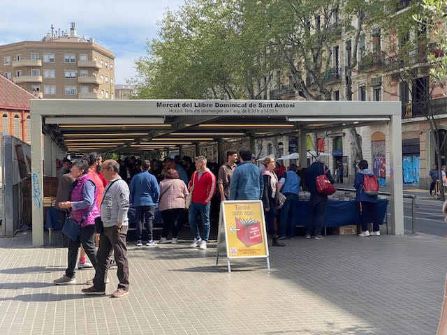 Los domingos, desde hace ya muchos años, se monta el mercado del libro de Sant Antoni. Un mercadillo sobre todo de libros de segunda mano, que ha mutado a venta de objetos múltiples de coleccionista barato y antiguallas manga. Aún así, un sitio bonito para pasar una mañana tranquila viendo el intercambio de cromos de los padrazos motivados a conseguirle al niño la colección entera, antes que nadie, mostrando las habilidades negociantes y de buen padre a sus churrumbeles. Pasear entre tanta antigualla y no solo de libros, también de personas, te hace sentir ese pasado sucio del que venimos y que a la gente le encanta proclamar que tiempos pasados siempre fueron mejores. Recalcar que el mercadillo tiene varios personajes interesantes, que si quieren hablar contigo puedes sacar buena información y anécdotas del pasado. Con una vuelta al mercado a paso lento ya habrás pasado la mañana del domingo y habrás hecho hueco para un buen vermut.