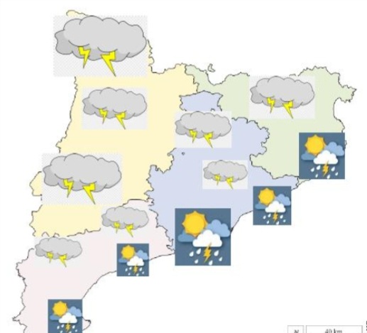 Durante este VIERNES tendremos un día marcado por la inestabilidad en algunas zonas de nuestra geografía, debido a que se cuela aire frío en altura y cuando choque con este aire tan cálido que tenemos actualmente, se formarán tormentas que pueden ser fuertes o muy fuertes en puntos de Aragon, Cataluña y en la C. Valenciana a partir del mediodía. En su primera mitad de la jornada, no se descarta que se formen chubascos acompañados de tormentas fuertes en la mitad norte y en el entorno del sistema central. En el resto del país, los cielos estarán poco nubosos o despejados.