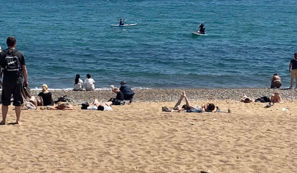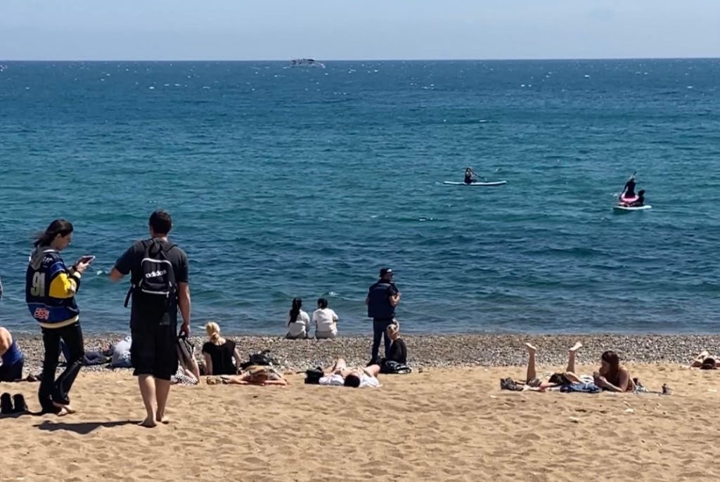 Ladrón camino la barceloneta, camuflandose en la playa.